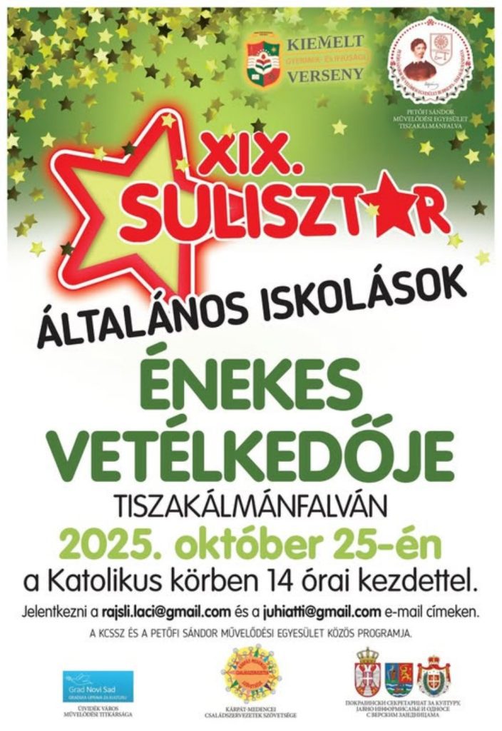 Szeretettel meghívunk minden érdeklődőt és résztvevőt a 19. Sulisztár énekes vetélkedőre, amelyet 2025. október 25-én, szombaton szervezünk meg Budiszaván – Tiszakálmánfalván.
