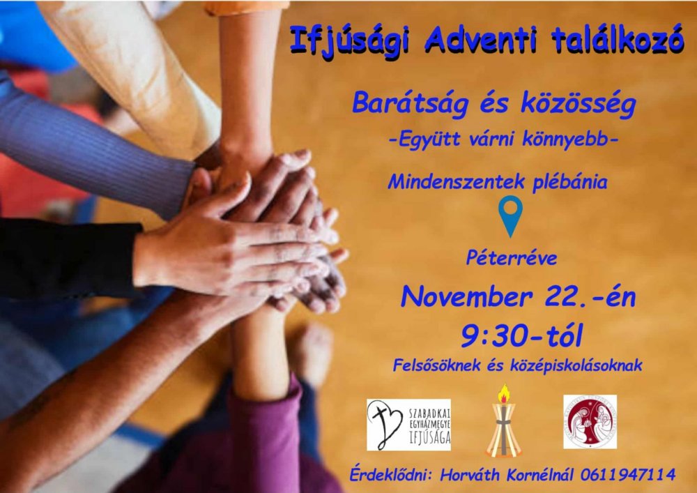 5. November 22-én, szombaton Péterrévén kerül megrendezésre az ifjúsági adventi találkozó. Jelentkezni Süge Zsolt hitoktatónál. Részvételi díj 150 dinár. Jelentkezni november 7-ig, jövő szombatig lehet.