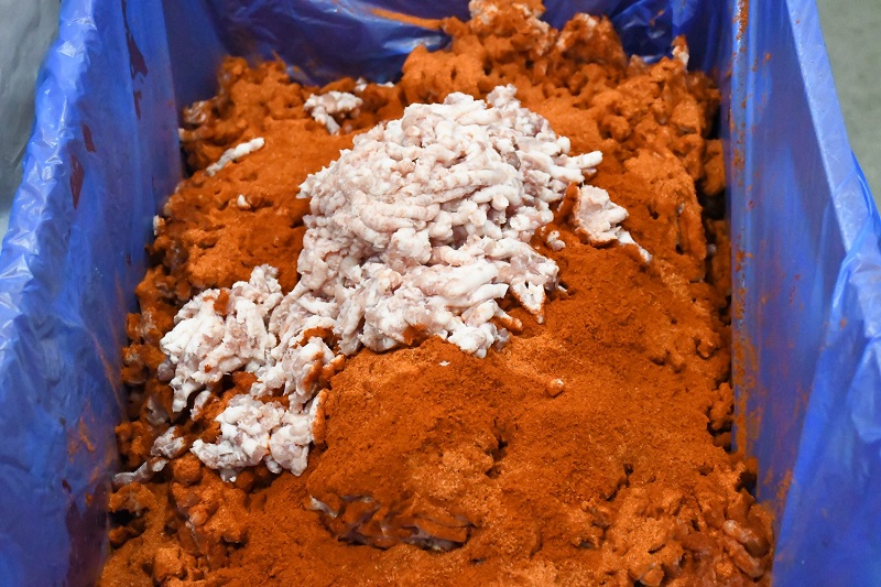 Felsőpakonyról (Pest megye) a Thermofoam Kft. csapata több éve vesz részt a kolbászgyúró versenyen. Érdeklődésünkre, hogy ott hogyan készítik a kolbászt, Koltai Károly, a csapat egyik tagja elmondta, nagyon fontos, hogy a húst apróra darálják, majd a só és bors mellett finom pirospaprikával fűszerezik.