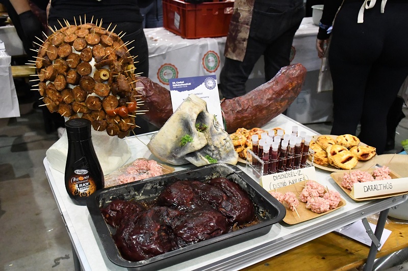 Láttunk medve-, szamár-, mangalica-, marha-, szürke-marha, szarvas-, őz-, ló-, birka-, csirke-, pulyka, nyúl-, strucc-, liba-, és kacsahúsból készült kolbászt. Némelyiket meg is kóstoltuk.