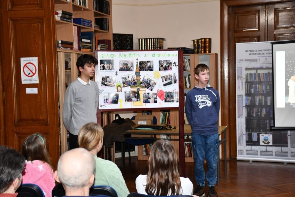 A szülők, a nagyszülők és az érdeklődők is figyelemmel követhették annak a két nagy plakátnak a bemutatóját, amelyekkel a szenttamási felsős diákok beneveztek az immár ötödik hittanversenyre. Az eseményen, amelyet február 7-én Tótfaluban tartanak, két szenttamási csapat vesz részt. Az 7. és a 8. osztályos diákok a helyi magyar óvodás csoportoknak bemutatták a Szent Kereszt felmagasztalása templomot, az 5. és a 6. osztály képviselői pedig az idősekkel folytatott foglalkozást örökítették meg. Tekintettel hogy csapatmunkáról van szó, egy-egy kihívást kellett kigondolni, megszerkeszteni, megvalósítani, lefényképezni, elkészíteni a képaláírásokat és a díszítést. Tulajdonképpen a kész plakát fényképét és a szükséges dokumentumokat kellett elküldeni a zsűrinek. Ez annyit jelent, hogy mire a verseny elkezdődik, a zsűri leosztályozza a munkákat, vagyis a kapott pontok a megmérettetés előtt már ismertek lesznek.