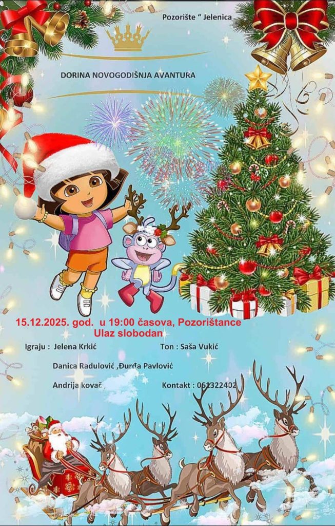 A szenttamási Kultúrotthon szeretettel meghívja az összes kisgyermeket és szüleiket az Dóra újévi kalandjai című újévi előadásra, amelyre 2025. december 15-én 19 órakor kerül sor a Zsebszínházban.