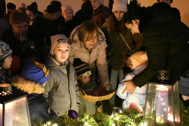 Lassan egy hónapja készülődnek a szenttamásiak a karácsonyi ünnepekre. A templomudvarban november 29-én-án elkészült a nagy adventi koszorú. Az első gyertyát, amely a hitet jelképezi november 30-án a Vajdasági Népek és Nemzetiségek Hagyományápoló Klub tagjai gyújtották meg. A reményt jelképező második gyertyát december 7-én a Süge Zsolt hitoktató vezetésével a hittanos diákok lobbantották lángra.