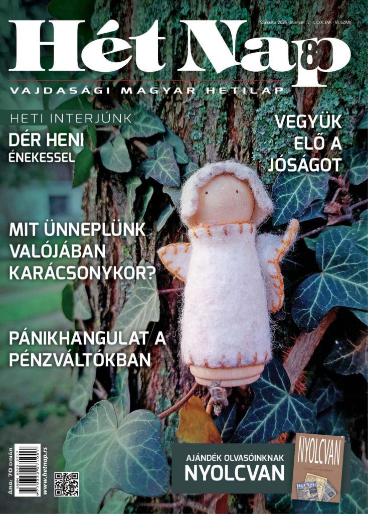 * SZABADKAI NAPLÓ: Mit ünneplünk valójában karácsonykor? Gondolatébresztő beszélgetés a Mathias Corvinus Collegium képzési központjában * Vegyük elő a jóságot. Támogassuk mi is a Szabadkai Segítő Csipet Csapat jótékonysági szervezet munkáját * Adventi ajándék koncertek sora. Csantavéren mutatták be a Betlehemi csillag című előadást — Miskolci Krisztina írása * Béke és boldogság. 17. alkalommal tartották meg Hajdújáráson az Advent a Falunkban elnevezésű gyertyás körmenetet