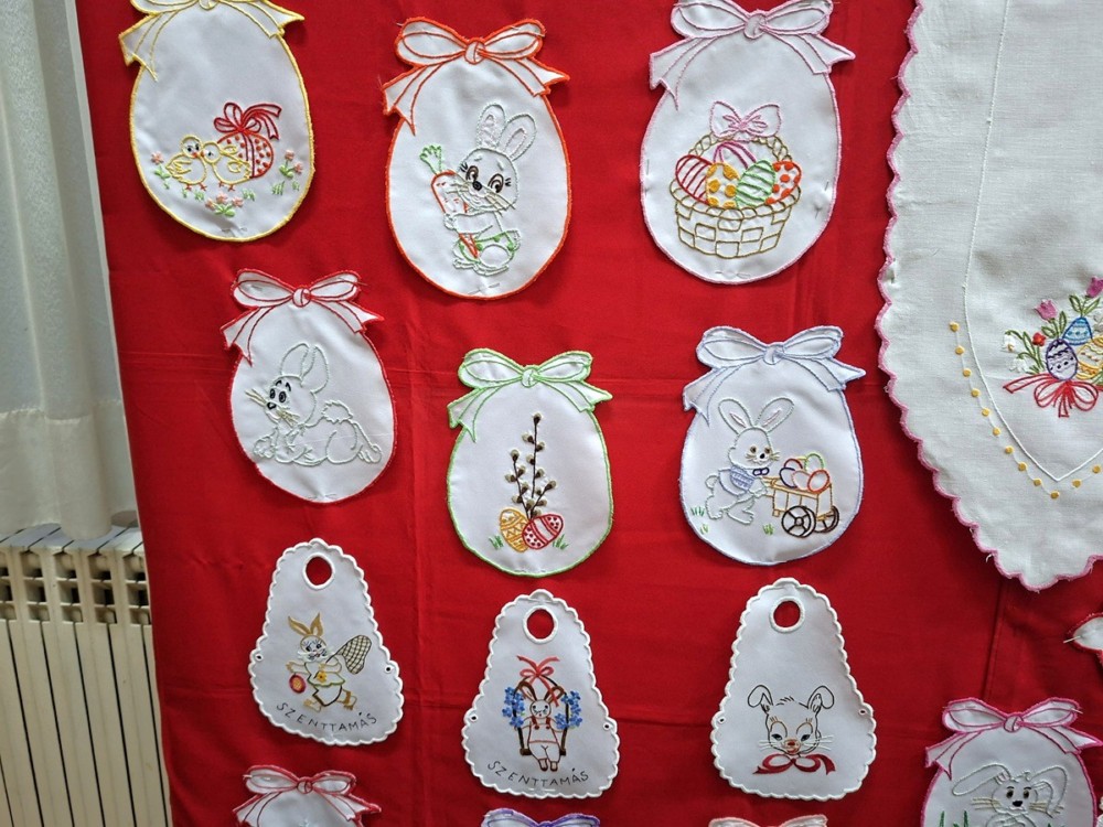 − Az idén is így történt, a látogatók egy héten keresztül nézhetik meg a munkáinkból készült válogatást, és mindig igyekszünk főleg az ünnephez kapcsolódó alkalmi darabokat hozni. A húsvéti motívumokkal díszített munkák mellett vannak virágos terítők, de csipkéket is hoztunk, valamint különböző technikával díszített tojásokat és gyertya virágokból összeállított kompozíciókat, asztaldísznek. Igyekszünk mindig kicsit újítani, változtatni, ugyanis a hímzés és a kézművesség terén is sokféle technikával dolgozunk – mondta Füstös Erzsébet.