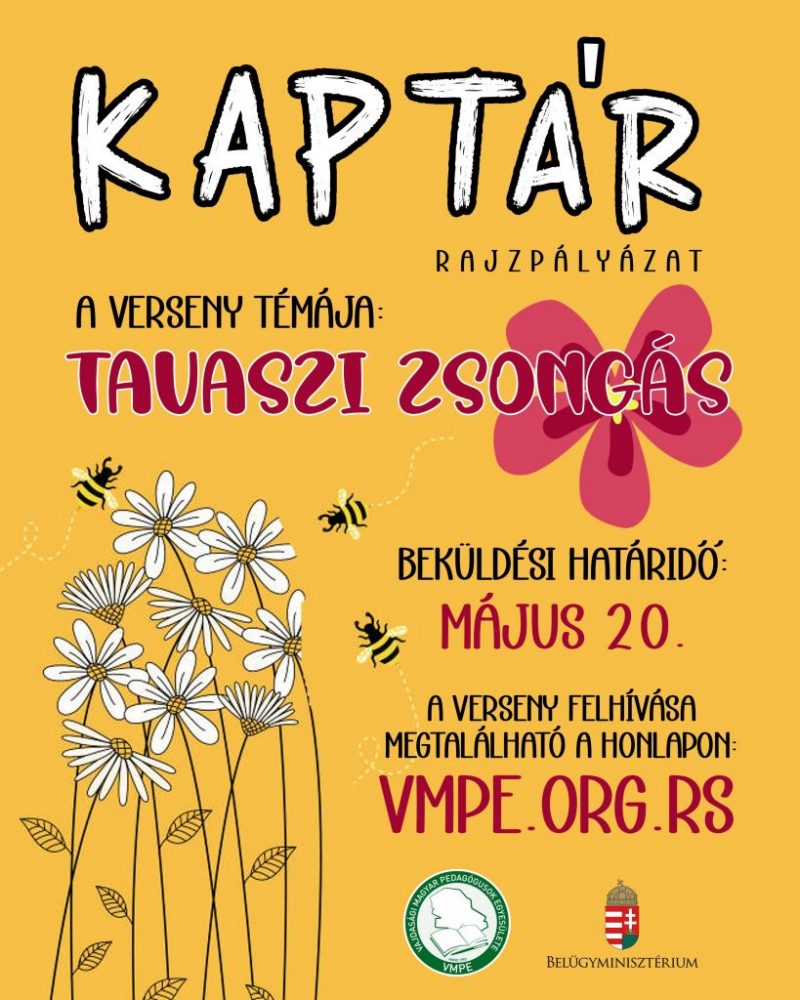 Rajzpályázat a Méhek Világnapja alkalmából. Vajdasági Magyar Pedagógusok Egyesülete kiemelt hangsúlyt fektet a tehetséggondozásra és fejlesztésre továbbá a természet és környezet védelmére is.