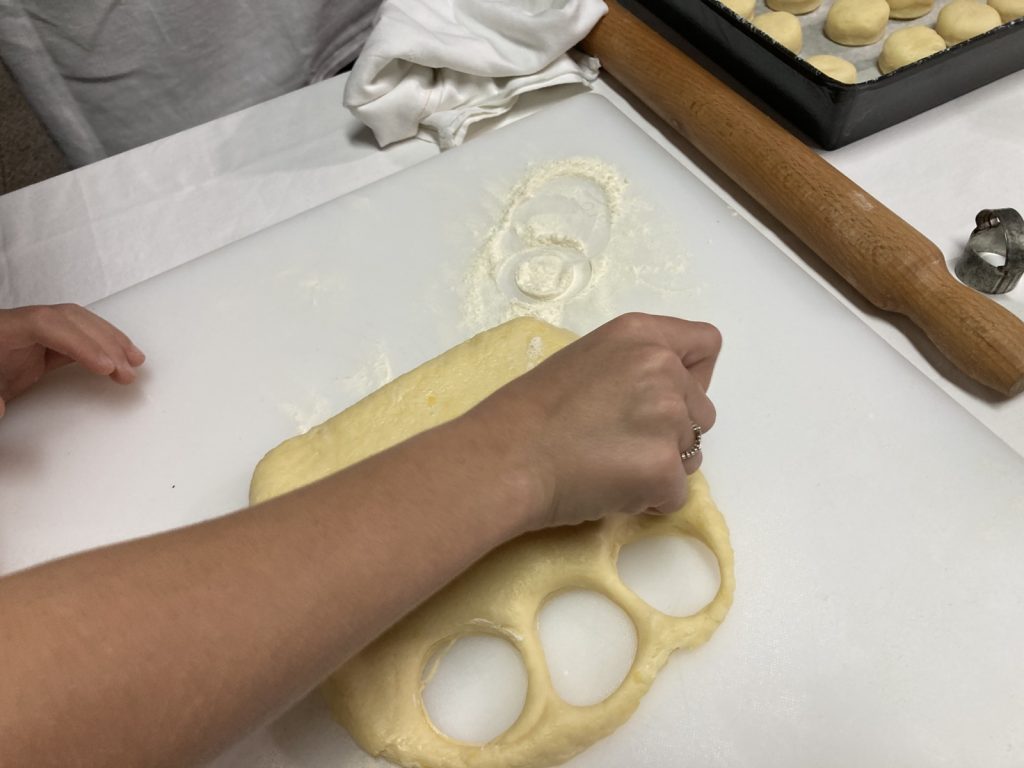 A többórás foglalkozáson az alsósok megtanultak tésztát gyúrni, nyújtani, pihentetni, pogácsákat szaggatni és tojássárgájával lekenni, hogy szép pirosra süljenek. A végén meg is kóstolták a munka eredményét, mindez külön élményt jelentett számukra.