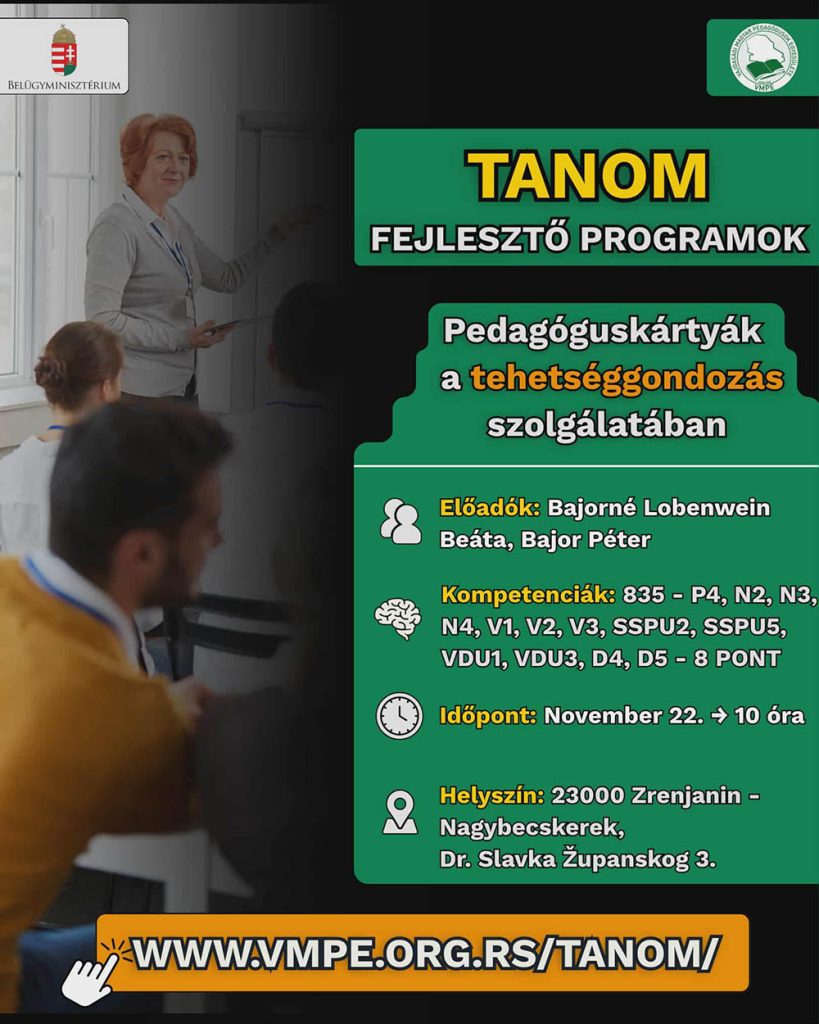 Látogassanak el honlapunkra, ahol a rendezvény részleteiről tájékozódhatnak: https://www.vmpe.org.rs/pedagoguskartyak-a-tehetseggondozas-szolgalataban/