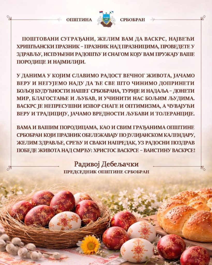 Ezekben a napokban, amikor az örök élet örömét ünnepeljük, megerősítjük hitünket és ápoljuk a reményt, hogy mindaz, amit teszünk, hozzájárul Szenttamás, Turia és Nádalja jobb jövőjéhez – békét, jólétet és szeretetet hozva, és jobb emberekké formálva bennünket. A húsvét a kimeríthetetlen erő és az optimizmus forrása, és a hit és a hagyomány megőrzésével erősítjük a szeretet és a tolerancia értékeit.