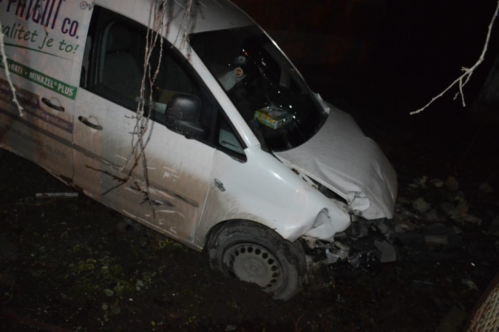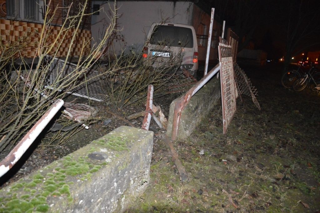 A furgon az út bal oldalára sodródott, áthaladt egy meglehetősen sekély árkon, ezt követően néhány métert repült. Először egy ház fémből készült kerítését sodorta el, majd átrepülve az alsó, betonból készült rész felett az autó a szomszédos ház falának ütközve állt meg.