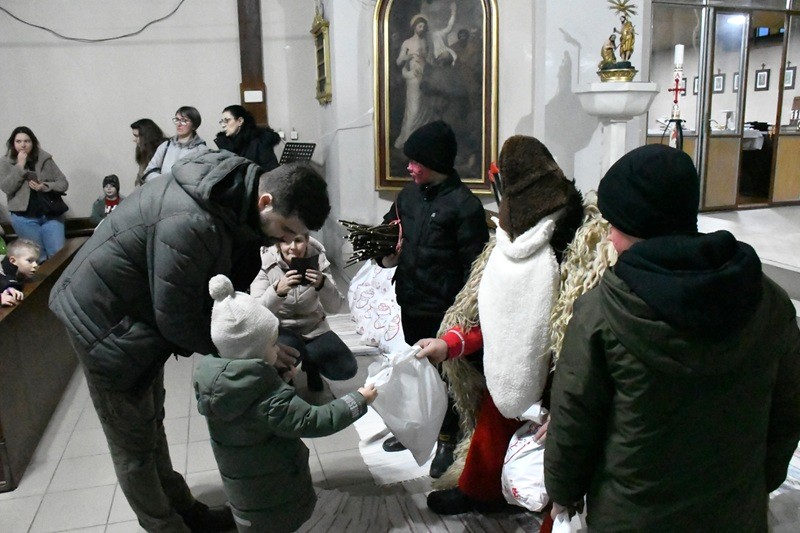 − Hagyományosan immár harmadszor össznépi összefogásból szerveztük meg a Mikulás-várást. A fő szervező az Arany János, de az akcióba bekapcsolódott a VMSZ helyi szervezete, a szenttamási római katolikus plébánia Tibi atyával az élen, a Kézimunkakedvelők Egyesülete, a Citadella Civil Szervezet, ők az idén is sütöttek mézeskalácsot, Vékony Csaba, gyümölcsermelő, aki az idén is az almát biztosította a csomagokba, besegített a Hagyományápoló Klub is, tehát szinte minden szenttamási civil szervezet, csoport kivette a részét a csomagok elkészítéséből. Idén sikerült egy kicsit gazdagabb csomagot is összerakni. Összesen 220 db. készült, tavaly 210-et tavaly osztottunk szét, és persze virgácsból sem volt hiány – mondta Salamon Rudolf.