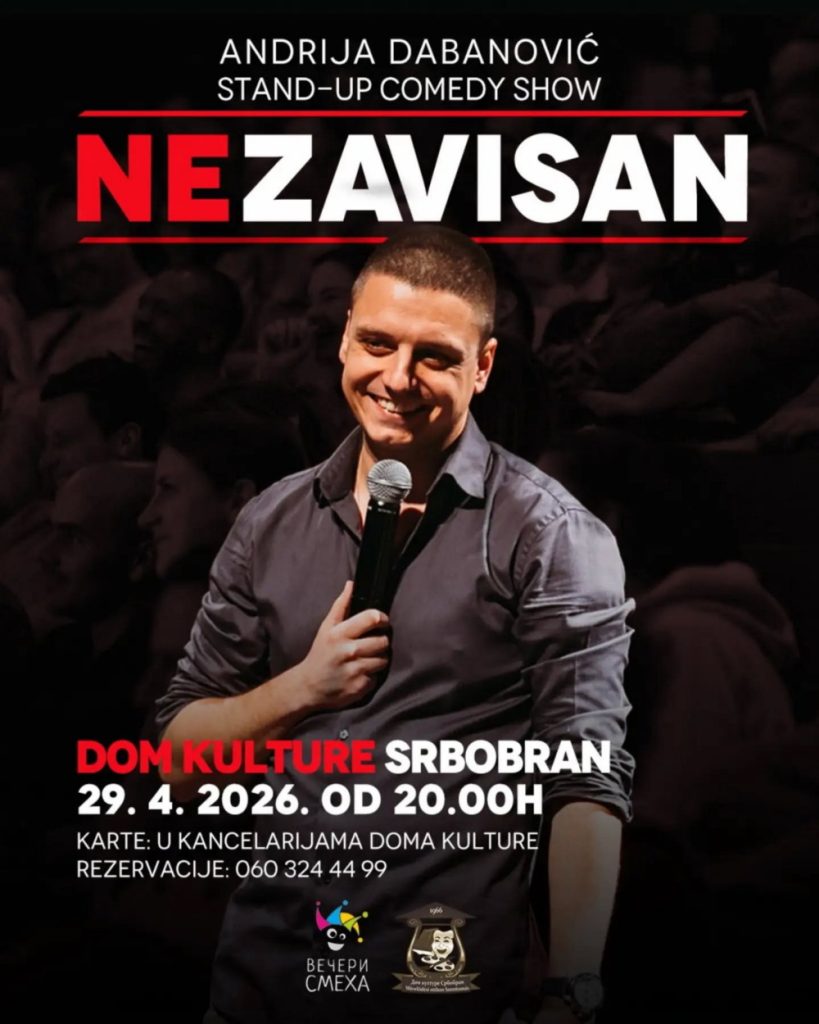 A szenttamási Kultúrotthon szervezésében április 29-én (szerda) a Zsebszínházban 20 órai kezdettel Andrija Dabanović Nezavisan című stand-up műsorát láthatja a közönség.
