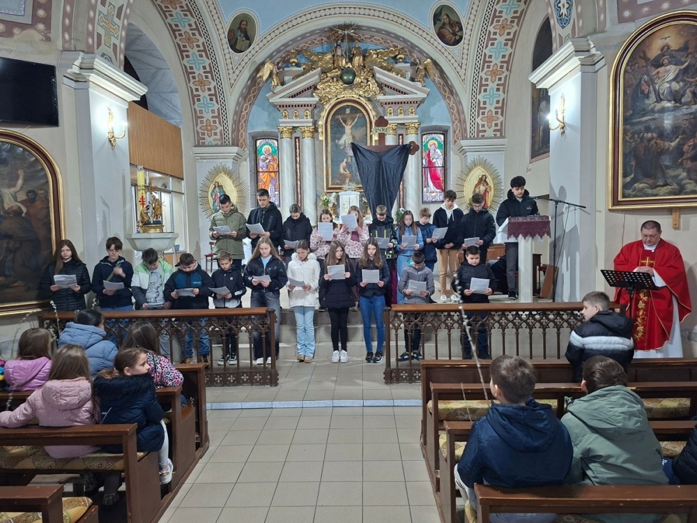 ​Az áldozást követően a templom csendjében Kovács Blanka tanárnő előadásában csendült fel az Aranymiatyánk. Ez a mély értelmű népének méltó módon foglalta össze a húsvéti misztérium lényegét, segítve a híveket, hogy ne csak értelemmel, hanem lélekkel is ráhangolódjanak az előttünk álló napokra.